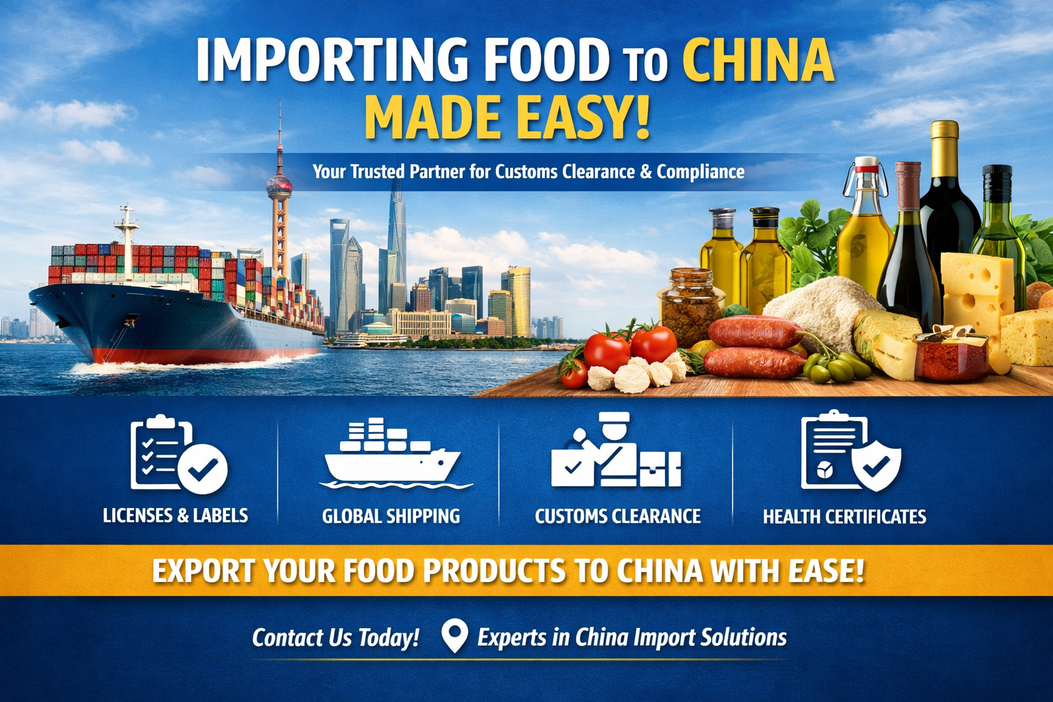 One-stop solution for bringing your food products into China — fast, compliant, and stress-free.